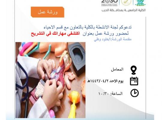 ورشة عمل بعنوان اكتشفي مهاراتك في التشريح