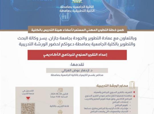ورشة تدريبية بعنوان "إعداد التقرير السنوي للبرنامج الأكاديمي" بالكلية الجامعية بصامطة والكلية التطبيقية بصامطة