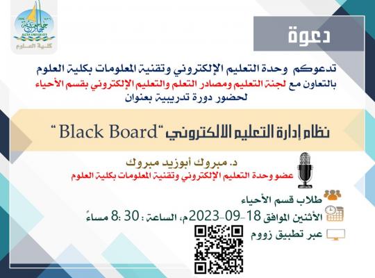 دورة تدريبية لطلاب وطالبات كلية العلوم والمسار الصحي بعنوان نظام إدارة التعليم الإلكتروني البلاكبورد