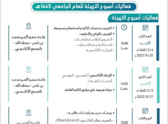فعاليات أسبوع التهيئة للعام الجامعي ١٤٤٥