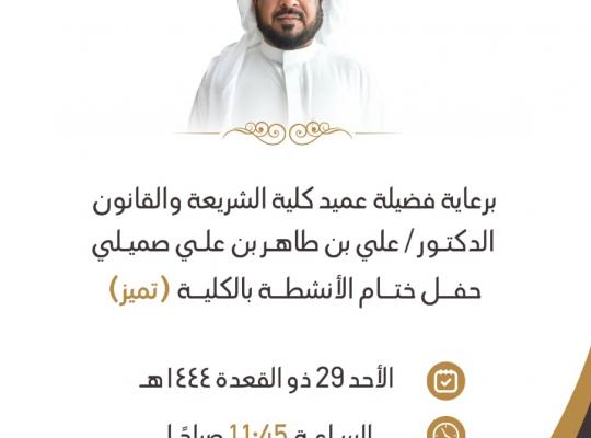 برعاية فضيلة عميد كلية الشريعة والقانون حفل ختام الأنشطة بالكلية