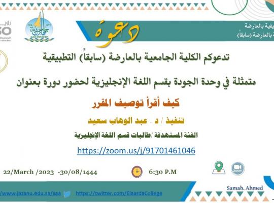 دعوه لحضور دورة بعنوان ( كيف أقرأ توصيف المقرر )