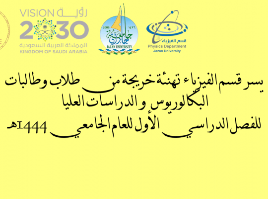 تهنئة القسم للخريجين من طلاب وطالبات البكالوريوس و الدراسات العليا للفصل الدراسي الأول للعام الجامعي 1444هـ