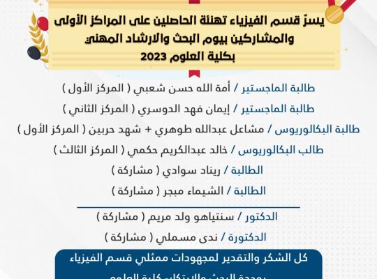 تهنئة القسم للحاصلين علي المراكز الأولي و المشاركين بيوم البحث والارشاد المهني بكلية العلوم