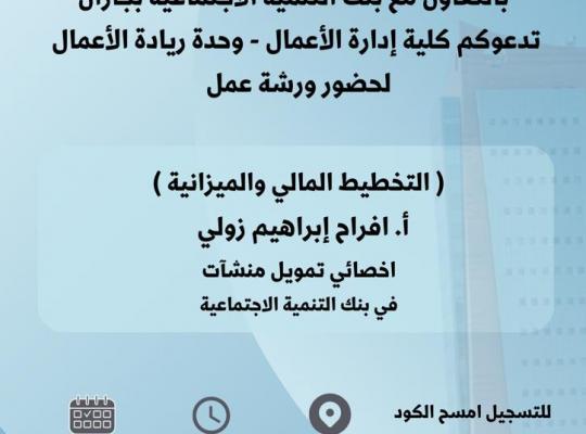 اعلان: ورشة عمل بعنوان(التخطيط المالي والميزانية)