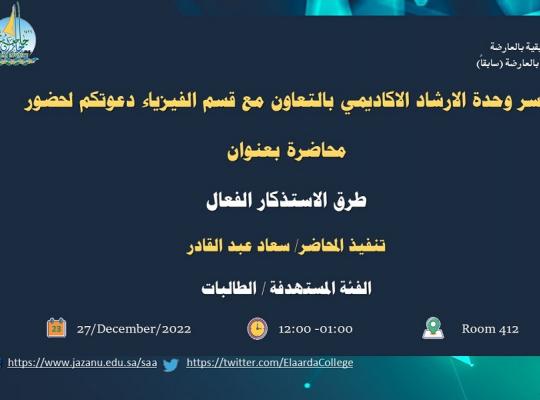 دعوه لحضور محاضرة بعنوان ( طرق الاستذكار الفعال)