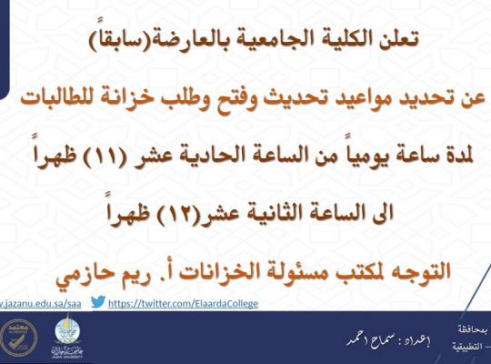 تحديد مواعيد تحديث وفتح وطلب خزانة للطالبات