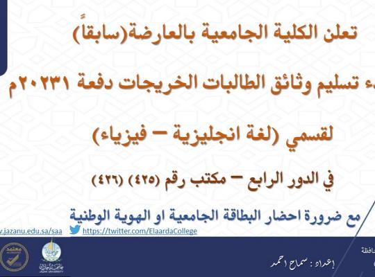 تعلن الكلية الجامعية بالعارضة (سابقا) عن بدء تسليم الوثائق