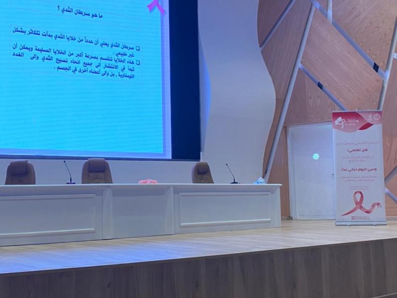 تم المشاركة مع عمادة الموارد البشرية بالتعاون مع المستشفى الجامعي برنامج التثقيفي بسرطان الثدي في مسرح المجمع الاكاديمي للطالبات محلية