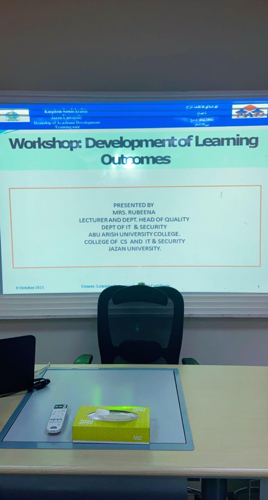 نظمت وحدة الجودة والتطوير بالكلية الجامعية بأبو عريش ورشة عمل بعنوان "تطوير نتائج التعلم" لأعضاء هيئة التدريس. أقيمت ورشة العمل يوم  الثلاثاء الموافق 15/2/2022م من الساعة 10صباحًا حتى 12 ظهرًا في قاعة الاجتماعات بالكلية