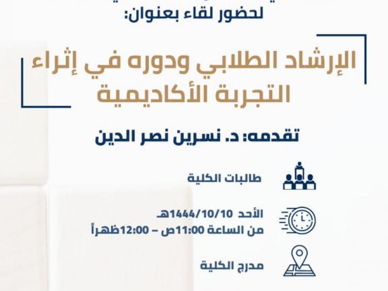 نفذت الكلية التطبيقية بصامطة و الكلية الجامعة بصامطة (سابقا) ممثلة في وحدة الارشاد الطلابي لقاءً تفاعلياً ومحفزاً مع طالبات الكلية بعنوان "الإرشاد الطلابي ودوره في إثراء التجربة الاكاديمية". أدارت اللقاء د. نسرين نصر الدين، و تطرقت فيه لأبرز الخدمات الإرشادية التي تقدمها الوحدة وأكدت على أهمية الإستعانة بالمرشدة الأكاديمية خلال المسيرة الجامعية. كما استعرضت عدداً من النصائح والممارسات المثلى لتحقيق تجربة أكاديمية متميزة. ثم تطرقت مقدمة اللقاء أيضاً لأبرز المعوقات التي قد تعوق مسيرة التقدم الأكاديمي ونصائح للتعامل معها والتغلب عليها للوصول إلى مستوى أكاديمي متميز. وقد شهد هذا اللقاء تفاعلاً من طالبات الكلية اللاتي ساهمن بعرض بعض من تجاربهن وخبراتهن.