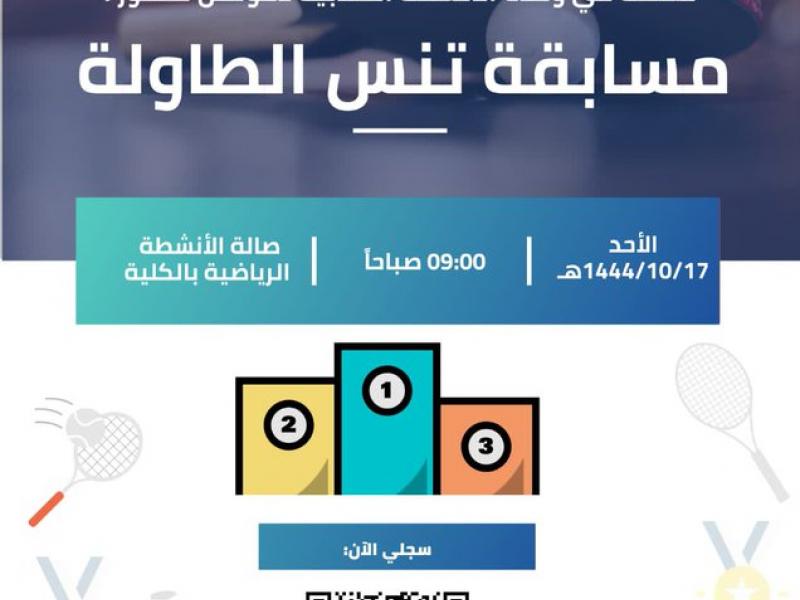 أقامت الكلية التطبيقية بصامطة والكلية الجامعية بصامطة (سابقا) "مسابقةتنس الطاولة"، وذلك تحت إشراف مشرفة الصالة الرياضية بالكلية أ. ليلى عريشي. وتأتي هذة المسابقة ضمن خطة الأنشطة الطلابية بالكلية لعام ١٤٤٤هـ، والتي جاءت للتأكيد على أهمية الأنشطة الرياضية، وبث روح التنافس بين طالبات الكلية. وتخلل المسابقة أجواء ًحماسية حيث شارك فيها عدداً من طالبات الكلية، واختتمت المسابقة بتكريم الحاصلات على الثلاث مراكز الأولى، حيث كان في المركز الأول الطالبة مريم طوهري، بينما في المركز الثاني الطالبة غادة جماح، وفي المركز الثالث الطالبة عنود مرير.