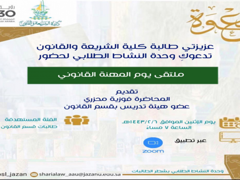 ملتقى يوم المهنة القانوني بكلية الشريعة والقانون