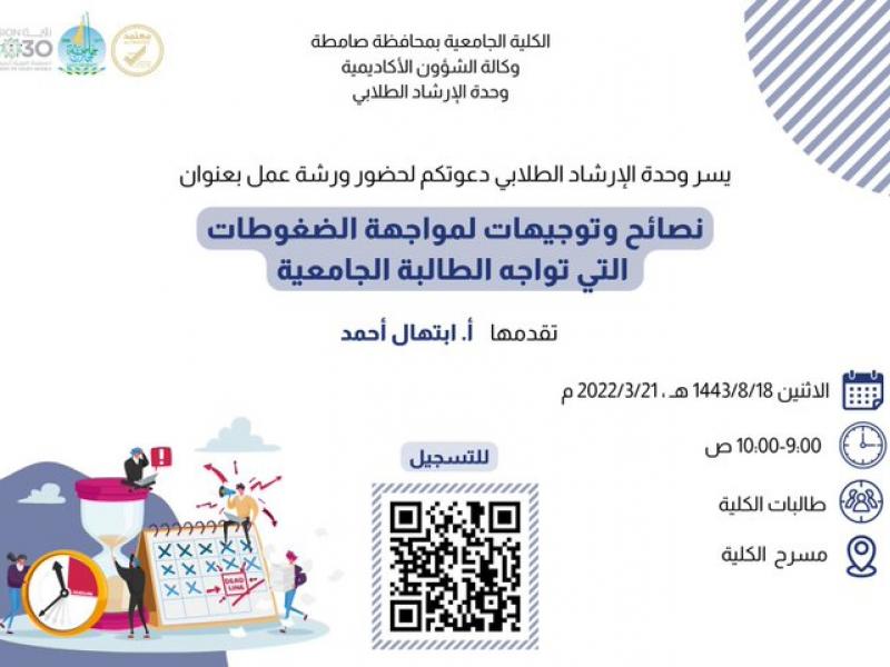 ورشة الضغوطات التي تواجه الطالبة في الكلية الجامعية بصامطة