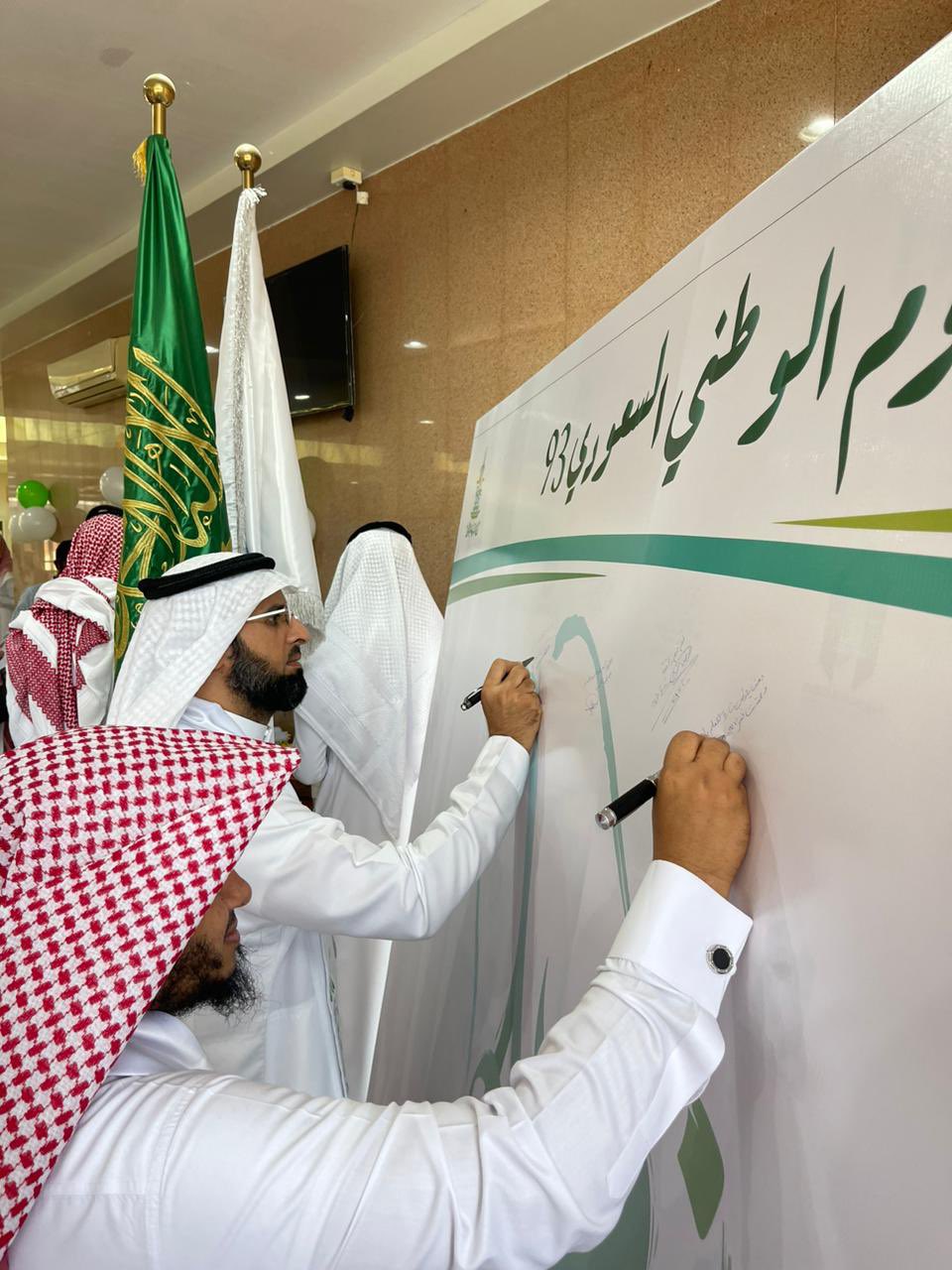 برعاية فضيلة عميد الكلية تم افتتاح معرض الكلية بمناسبة الاحتفال باليوم الوطني ٩٣ بحضور وكلاء الكلية ورؤساء الأقسام العلمية والهيئة الإدارية تم من خلاله التعرف على أركان المعرض ، وتكريم المتميزين من الهيئة الإدارية والمنظمين للمعرض.