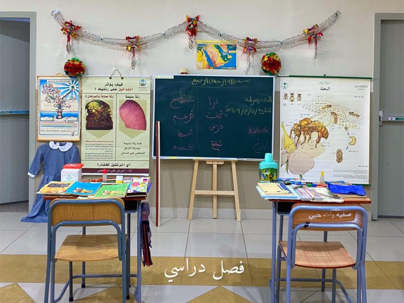 تسعة عقود من العز والفخر في #اليوم_الوطني_السعودي_93 ركن من متحف الطالبة نوره غزواني (التعليم قديماً) المعرض الفني مشاركات طالبات كلية الشريعة والقانون قصة وسيناريو / تأليف مارية سهلي..