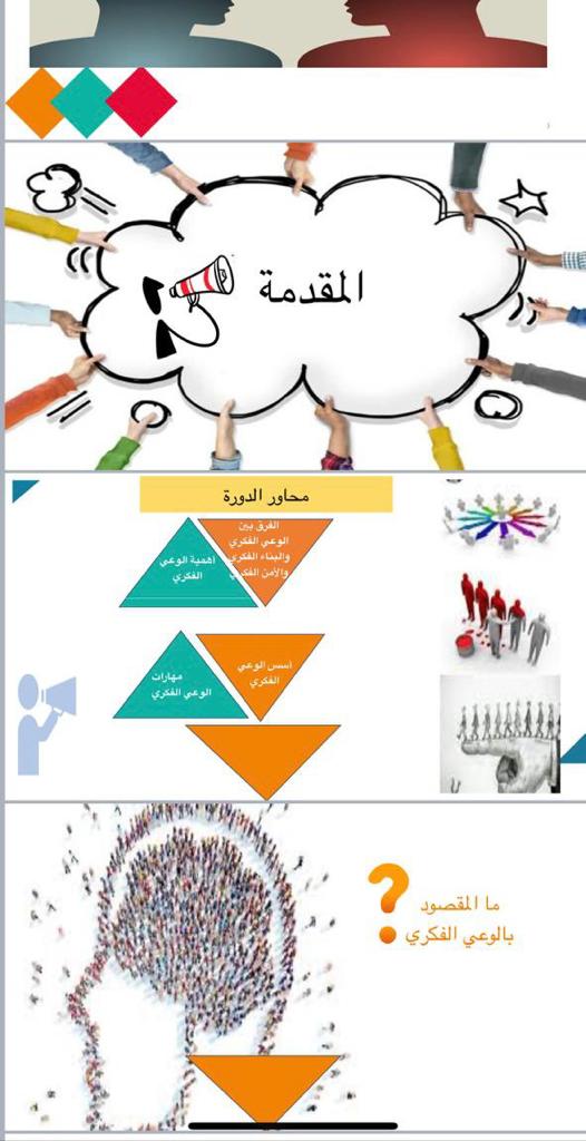 الفرق بين الوعي الفكري ، البناء الفكري ، الأمن الفكري وأهمية الوعي الفكري وأسس ومهارات الوعي الفكري وقد حضر الدورة عدد من عمدا ء وعميدات ووكلاء ووكيلات الكليات ورؤساء الأقسام واعضاء هيئة التدريس والهيئة الإدارية وطالبات الكلية هذا وقد اشتملت الورشة على عرض مرئي ومداخلات ومناقشة من قبل الحضور واختتمت الورشة با إعجاب الجميع والثناء ...
