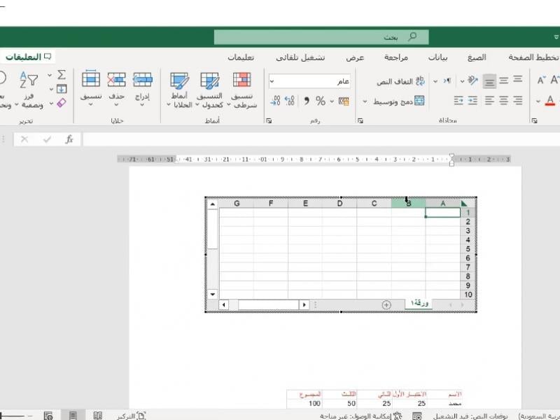 بدأ المدرب خطوات التدريب من خلال التعريف ببرنامج الاكسل ومهامه وخصائصه وفوائده، ثم بين التنسيقات المشتركة بين الاكسل والوورد في شريط الأدوات ومحتوى الخلايا.