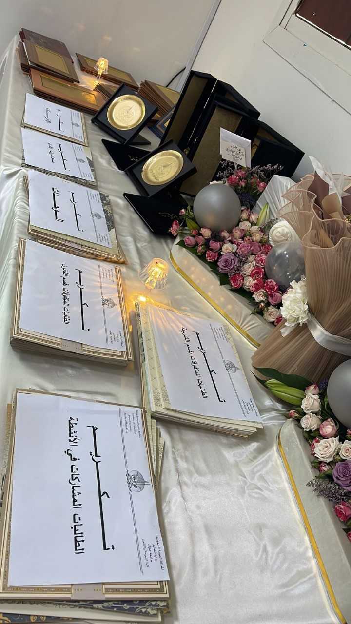 برعاية سعادة وكيلة جامعة جازان لشؤون الطالبات د.فاطمة بنت عبدالعزيز عقيلي ، أقامت كلية الشريعة والقانون شطر الطالبات الحفل الختامي للأنشطة للعام الجامعي ١٤٤٤هـ وحفل تكريم المتعاقدات فضيلة د. شيماء بنت عبد الصبور عضو هيئة التدريس بوحدة الإعداد العام ومنسقة وحدة الجودة والتطوير الأكاديمي و فضيلة د. نوال بنت عبدالرحمن عضو هيئة التدريس بوحدة الإعداد العام حيث تم في بداية الحفل استعراض تقرير إلكتروني عن إنجازات الكلية خلال عام ١٤٤٤هـ التي تم تحقيقيها بجهود منسوبات الكلية المحتفى بهن .