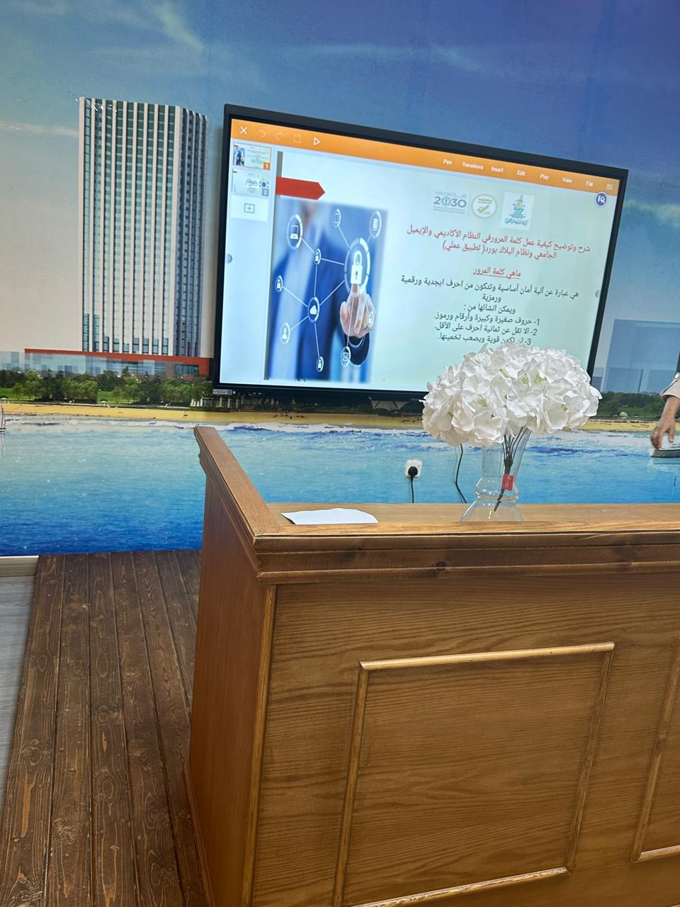 اللقاء الترحيبي التعريفي بكلية الشريعة والقانون يستمر أسبوع التهيئة لليوم الثالث وتضمن ورش عمل تدريبية على شرح وتوضيح لطريقة تفعيل البريد الجامعي وكيفية الدخول على البلاك بورد والتعريف بالنظام الأكاديمي..