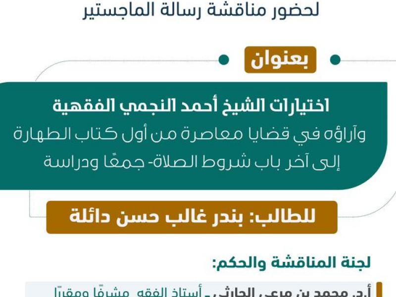 مناقشة رسالة الماجستير للطالب بندر دائلة