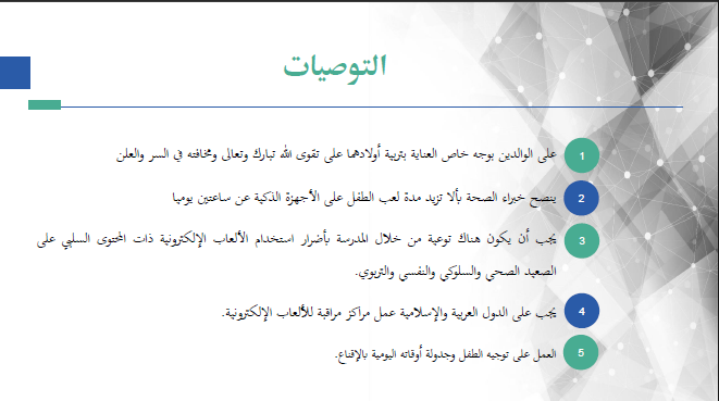 نفذت وحدة النشاط الطلابي بكلية الشريعة والقانون شطر الطالبات ندوة بعنوان أثر الأجهزة الذكية على شخصية الطفل وعقيدته تقديم د.آمنة خواجي عضو هيئة تدريس بقسم الدراسات الاسلامية تناولت الدورة في القسم الأول منها شرح مفصل لخطورة الألعاب الإلكترونية على سلوك الطفل وتأثيرها الصحي والنفسي والاجتماعي، وتناول القسم الثاني من الدورة شرح مفصل لخطورة الألعاب الإلكترونية على عقيدة الطفل، واختتمت الفعالية بعدة توصيات منها: انه على الوالدين بشكل خاص الاهتمام بتربية أولادهم على تقوى الله، ومخافته في السر والعلن، وبيان نصيحة الخبراء بألا تزيد مدة لعب الطفل على الأجهزة الذكية عن ساعتين يوميا، كما يجب نشر التوعية من خلال المدرسة بأضرار استخدام الألعاب الإلكترونية ذات المحتوى السلبي على الصحة والسلوك والنفسية والتربية، وغيرها من التوصيات.