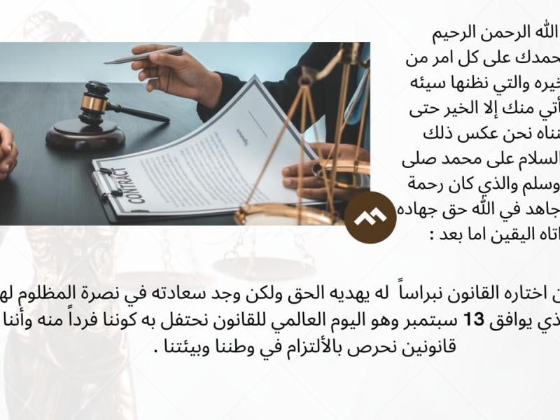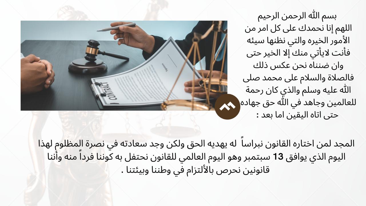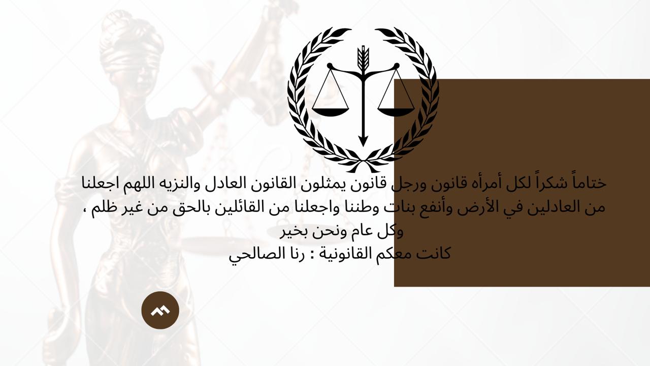 ثم اختُتِمَ البرنامج بخاتمة موجزة وشاكرة لنساء ورجال القانون الذين يمثلون القانون العادل والنزيه حق تمثيل.