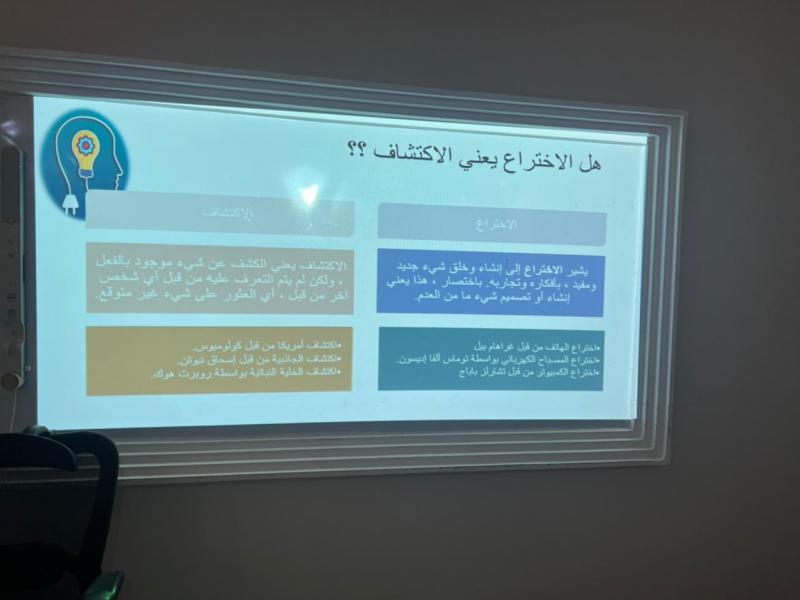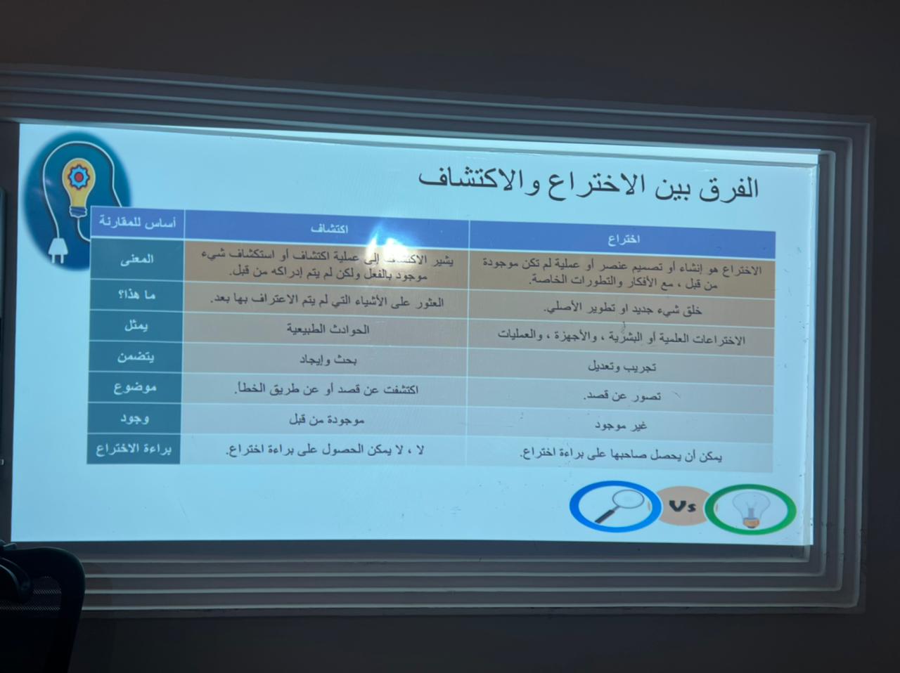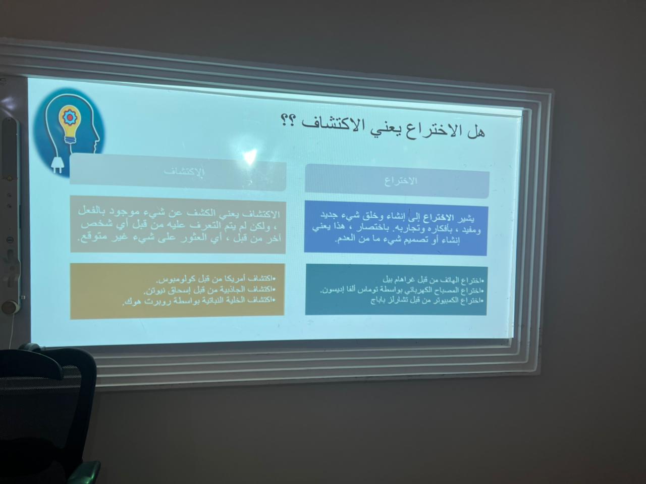 عمل مفارقة بين مفهومي الاختراع والاكتشاف لتقريب المعنى في اذهان الحاضرات.