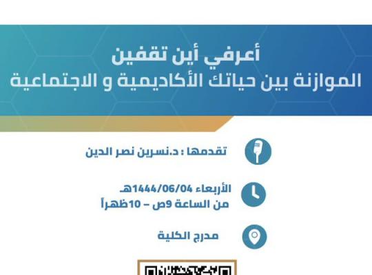 نظمت الكلية التطبيقية بصامطة و الكلية الجامعة بصامطة (سابقاً) ممثلة في وحدة الارشاد الطلابي ورشة عمل بعنوان " أعرفي أين تقفين، الموازنة بين حياتك الأكاديمية والاجتماعية" نفذتها د. نسرين نصر الدين، حيث سلطت الضوء خلالها على أهمية الموازنة بين الحياة