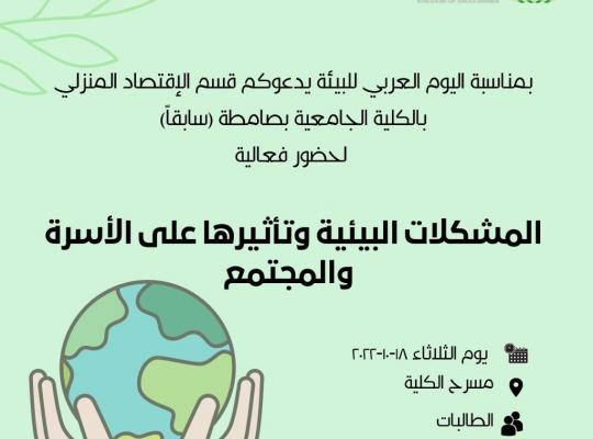 محاضرة توعوية حول المشكلات البيئية وتأثيرها على الاسرة والمجتمع في الكلية الجامعية بصامطة (سابقا) تزامناً مع اليوم العربي للبيئة، نفذ قسم الاقتصاد المنزلي بالكلية الجامعية بصامطة (سابقا) محاضرة توعوية بعنوان "المشكلات البيئية وتأثيرها على الاسرة