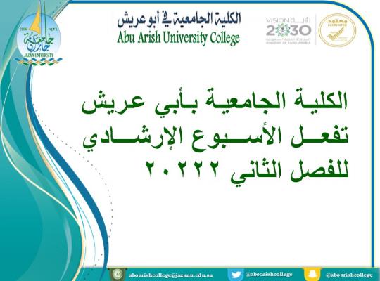 الكلية الجامعية بأبي عريش تفعل الأسبوع الإرشادي للفصل الثاني 2022 برعاية عميدة الكلية الدكتورة/ آسيا علي الشيخ نفذت الكلية الجامعية بأبي عريش ممثلة في وحدة الإرشاد الأكاديمي الأسبوع الإرشادي لجميع الطالبات في الأسبوع الأسبوع الأول من بدء الدراسة