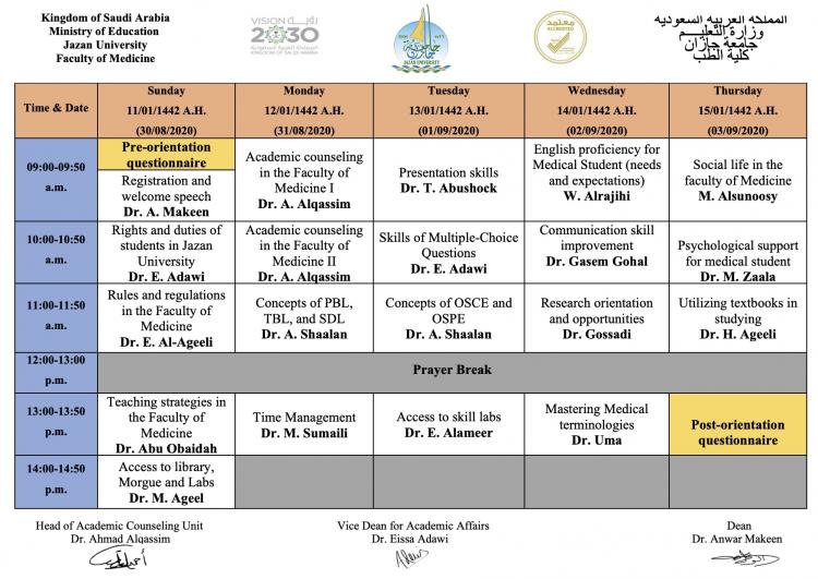 جدول فعاليات الأسبوع الإرشادي التوعوي