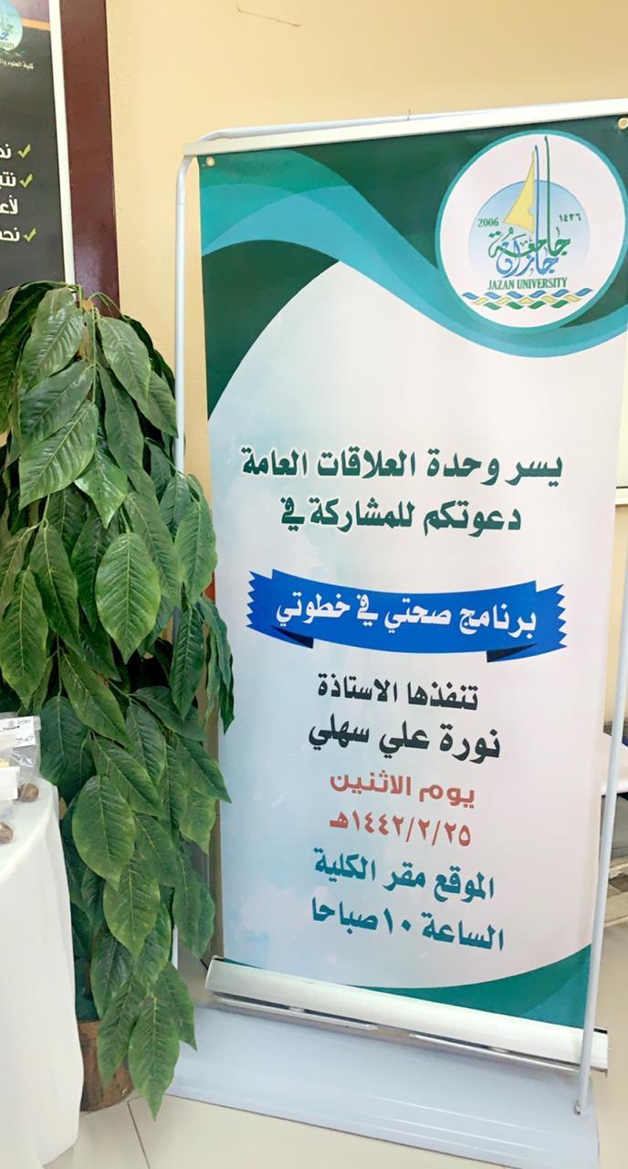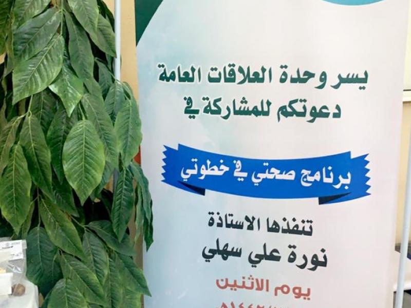 هذا وقد تم توزيع نشرات توعوية وبعض الأطعمة المفيدة صحيا وأشرفت على البرنامج منسقة وحدة العلاقات العامة الأستاذة نورة سهلي.