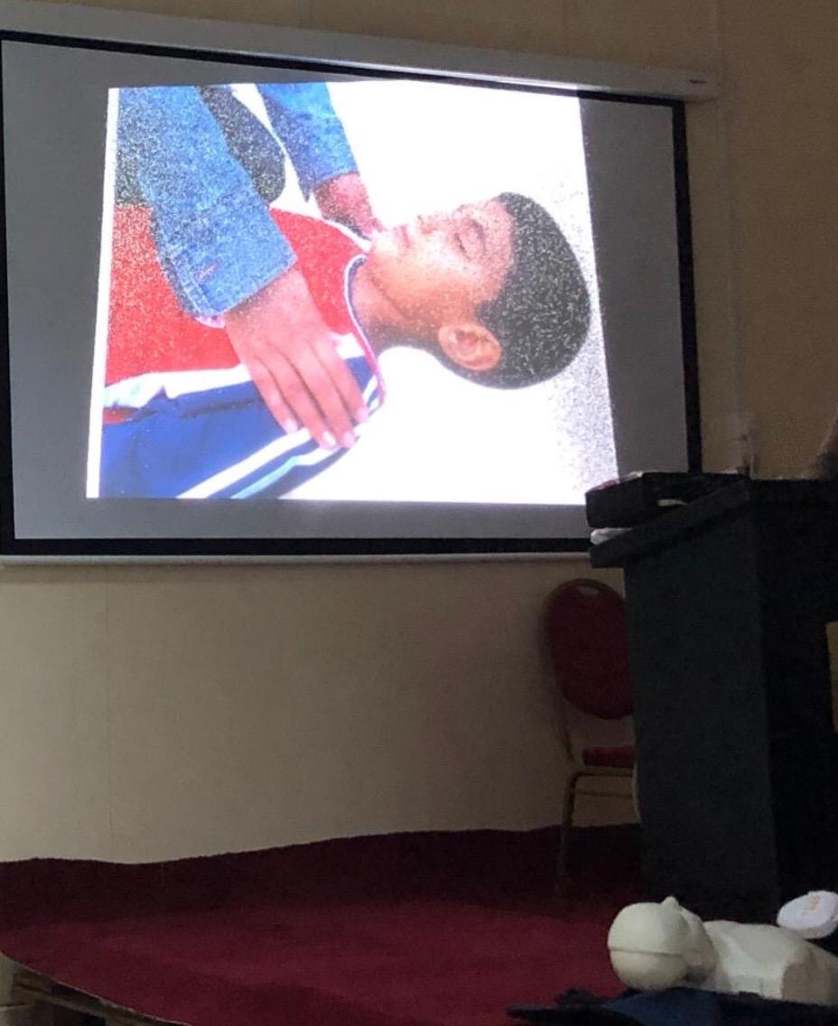 كما تم عرض فيديو توضيحي للإنعاش الرئوي، و تمت الإشارة فيه إلى الوضع الصحيح بعد الإفاقة, واختتمت الورشة بتطبيق عملي من الحضور لعملية الإنعاش القلبي الرئوي على مجسم.