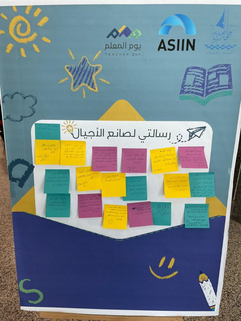 وتسهم هذه الفعالية في ترسيخ مكانة المعلم ودوره الأساسي؛ لبناء المستقبل والإسهام في استمرار الحياة العلمية والعملية، ومعرفة قيمة التعليم في تنمية المجتمعات .