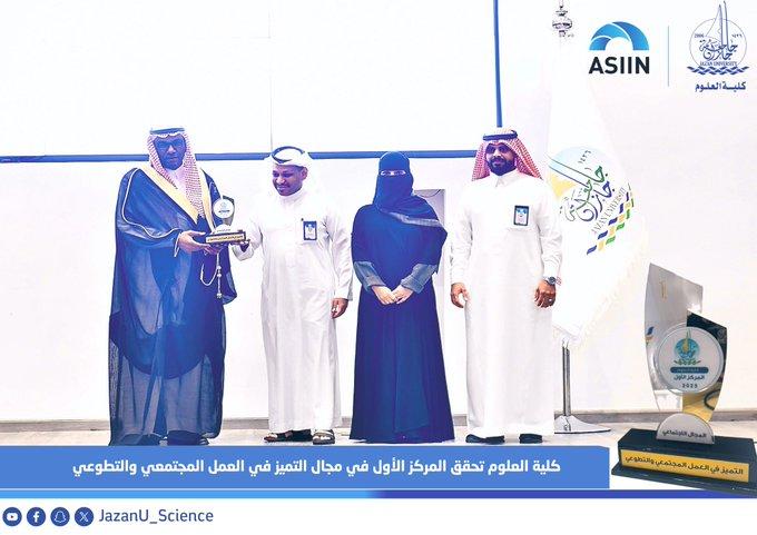 توج رئيس جامعة جازان #محمد_أبوراسين #كلية_العلوم بمناسبة تحقيقها المركز الأول في مجال العمل المجتمعي والتطوعي على مستوى كليات الجامعة.