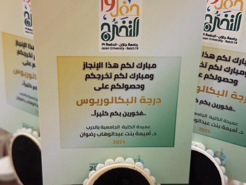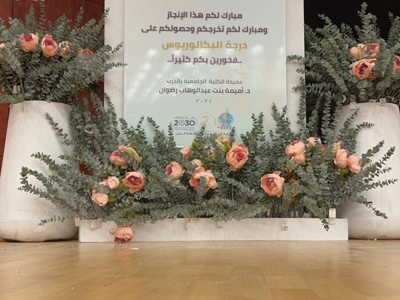 احتفلت الكلية الجامعية بالدرب صباح يوم الاربعاء الموافق 2024/5/8بطالباتها الخريجات برعاية سعادة عميدة الكلية د. اميمة رضوان ومشاركة وكيلات الكلية و رئيسات الأقسام وباركت الكلية للخريجات المتفوقات نجاحهن وتميزهن في مشوارهن التعليمي، متمنين لهن دوام التوفيق والنجاح