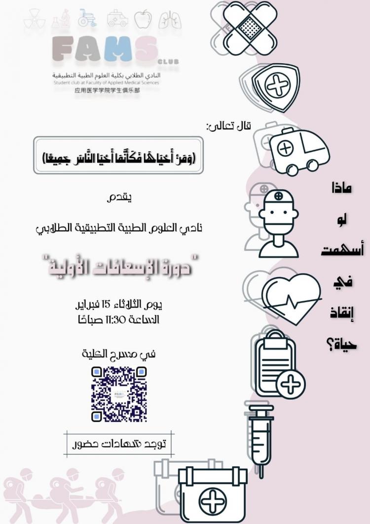 فعالية دورة الإسعافات الأولية –تحت شعار(ماذا لو أسهمت في إنقاذ حياة؟).