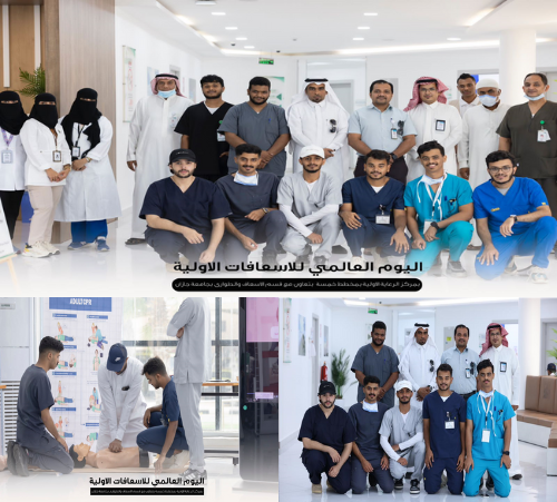 اليوم العالمي للإسعافات الأولية قسم الإسعاف والطوارئ بجامعة جازان بتعاون مع مركز الرعاية الأولية بمخطط خمسة.