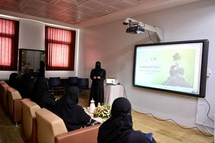 ثم استمع المنسوبات إلى شرح لأهم الأجهزة والمعدات البحثية بالمركز من خلال الجولة بالمعامل والمختبرات البحثية.
