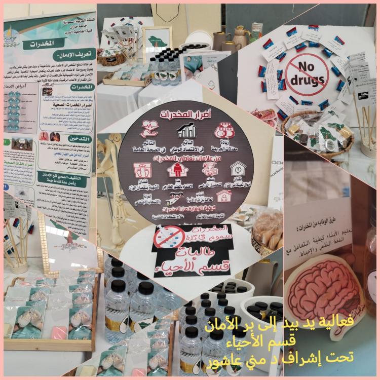 برعاية عميدة كلية الدرب ورئيسة قسم الاحياء نفذت طالبات قسم الاحياء فعالية يد بيد الي بر الامان تحت اشراف د/ مني عاشور حبث وجدت الفعالية قبول من الطالبات وتفاعل