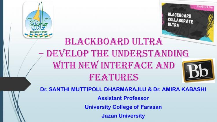فذت الكلية الجامعية بفرسان ممثلة في وحدة مصادر التعلم والتعليم الإلكتروني برعاية عميدة الكلية الدكتورة عفاف محمد با بعير دورة تدريبية بعنوان: الواجهات الجديدة في البلاك بورد وعلم الانتلوجي مستهدفة أعضاء هيئة التدريس في قاعة التدريب بالكلية .