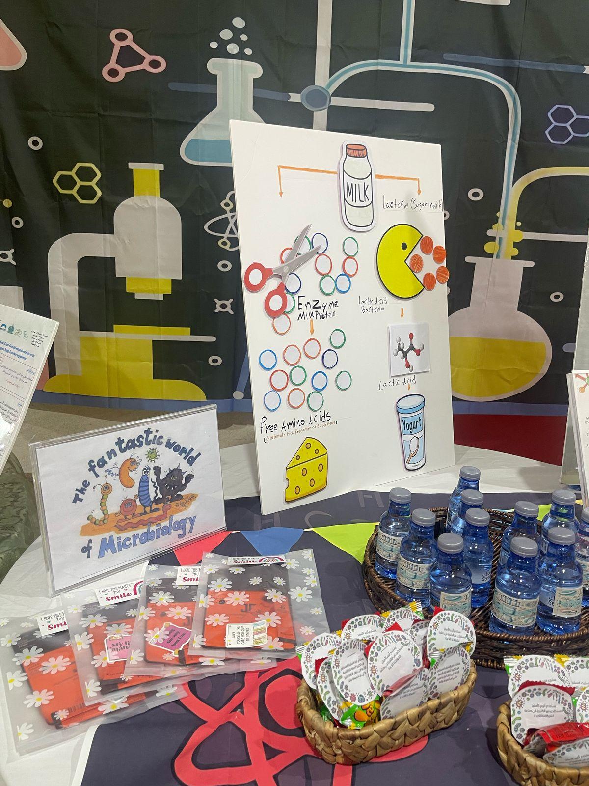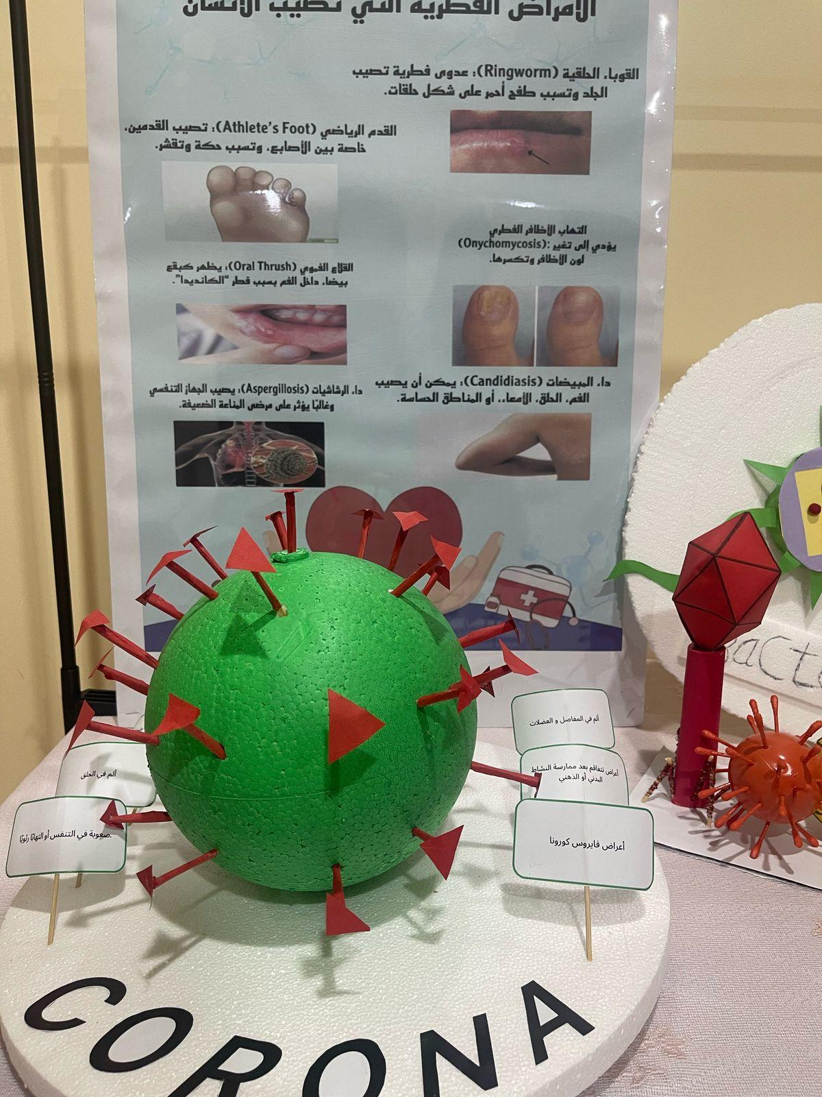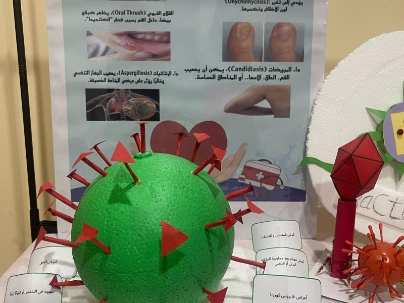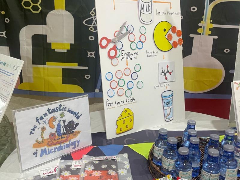وقد هدف المعرض إلى تسليط الضوء على الدور الهام الذي تلعبه الميكروبات في حياتنا اليومية، وكيف يمكن الاستفادة منها في مختلف المجالات. ففي قسم "الزراعة والميكروبات"، تم عرض أمثلة حية لكيفية استخدام الميكروبات في تحسين خصوبة التربة ومكافحة الآفات الزراعية. وفي قسم "الصناعة والميكروبات"، تم استعراض دور الميكروبات في إنتاج العديد من المنتجات الصناعية مثل الألبان والأجبان والمخللات. أما قسم "التغذية والميكروبات"، فقد تناول أهمية الميكروبات في عملية الهضم وإنتاج بعض الفيتامينات الضرورية للجسم. وأخيرًا، عرض قسم "الميكروبات الطبية" كيف تساهم الميكروبات في إنتاج المضادات الحيوية والأدوية الأخرى التي تساعد في علاج الأمراض.