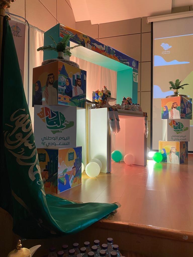 بدأ الحفل بالقرآن الكريم، والسلام الملكي، ثم مقدمة ألقتها منسقة وحدة النشاط الطلابي/ أ.منيرة عسيري، عبرت فيها عن مشاعر الفرحة والانتماء للبلاد، ثم كلمة سعادة العميدة والتي رفعت فيها أصدق التهنئة للمملكة قيادةً وشعبًا، وتحدثت بعميق الشعور بالفخر عن الإنجازات المتوالية لهذا الوطن ودوره في تمكين المرأة لتنمية البلاد.
