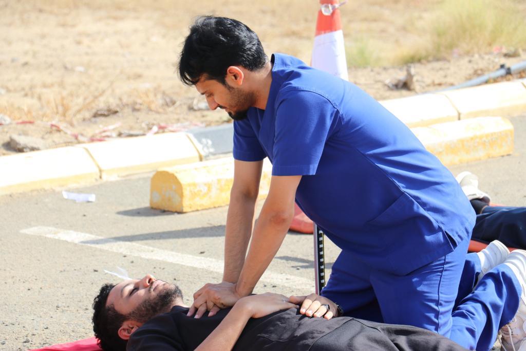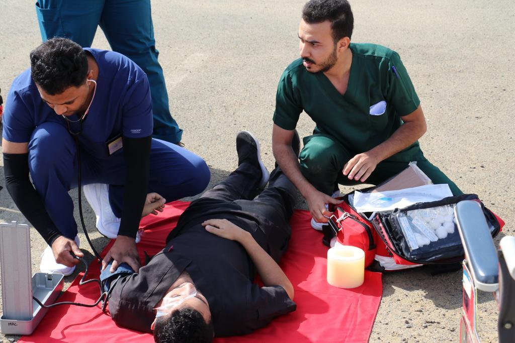 وقد تم الإعلان عن بدء تنفيذ الخطة حسب الوقت المجدول حيث قام فريق القيادة بتشغيل إنذار الطوارئ بالكلية ، حينها توجهت فرق التدخل السريع لموقع الحريق ، وتم إخلاء جميع المباني بالكلية بوقت وجيز وبطرق سليمة حسب قواعد وخطة الإخلاء دون حدوث أي تدافع أو اختناق بين الطلبة و توجيههم إلى نقاط التجمع المتفق عليها ومن ثم إسعاف و نقل المصابين حسب الخطة .
