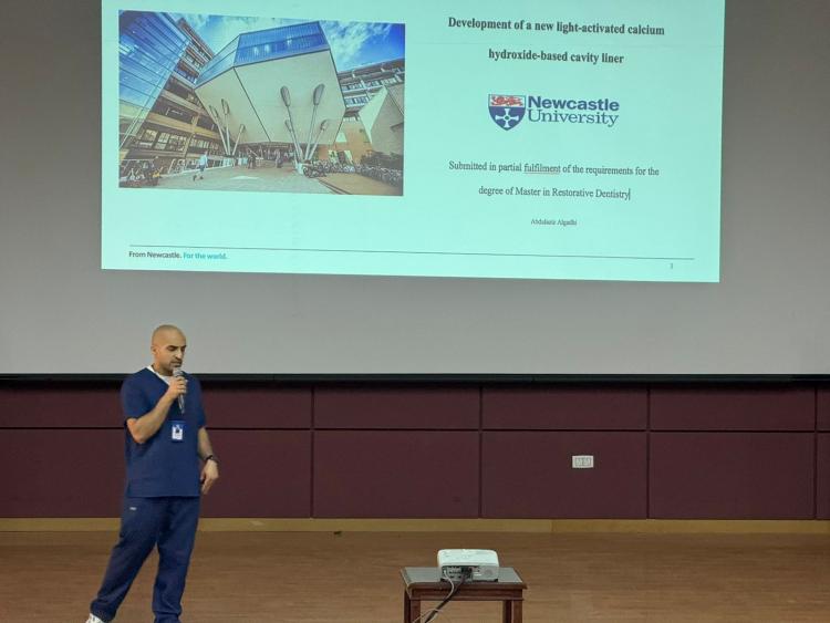 و تأثير دمج تركيزات مختلفة من الزجاج النشط حيويًا على الأداء العام للمركبات القائمة على الراتنج ،، و حضر المخاضرة العديد منأعضاء هيئة التدريس ،،
