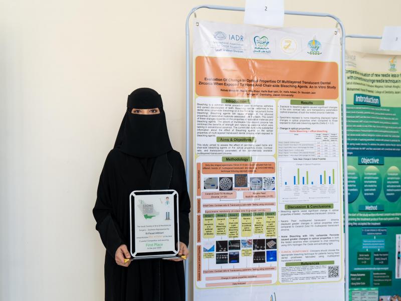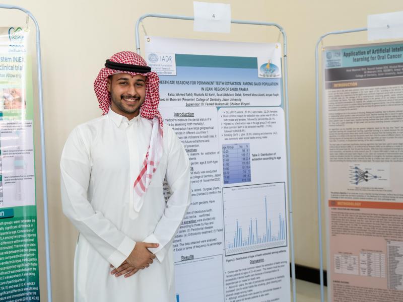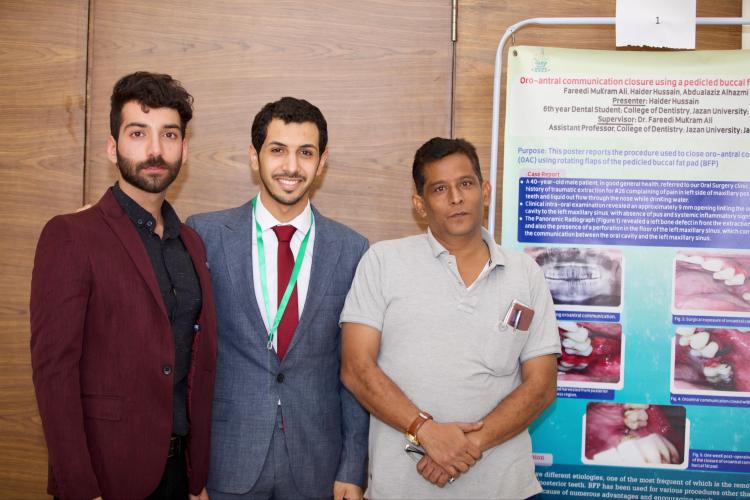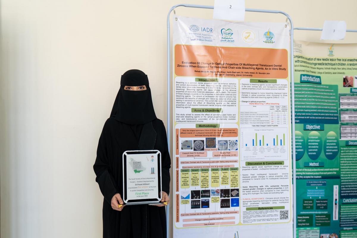 شارك طلاب كلية طب الأسنان يوم السبت 2 / 12 / 2023 بعدد من الملصقات العلمية في مجال طب الأسنان و ذلك بملتقى الجمعية السعودية لجراحة الوجه و الفكين و علوم التشخيص و الذي أقيم في منطقة جازان ،