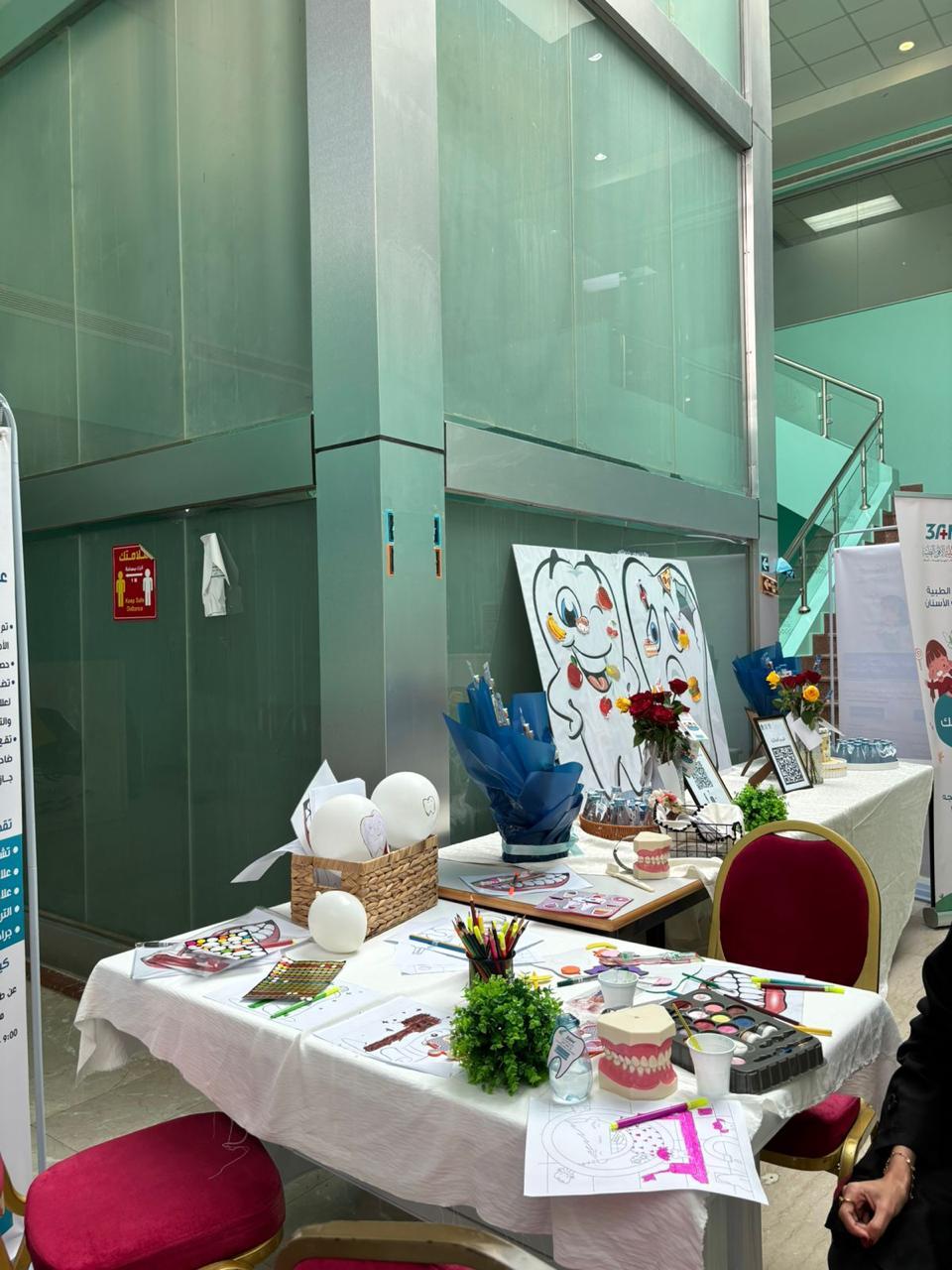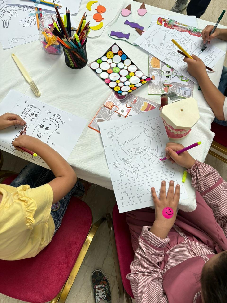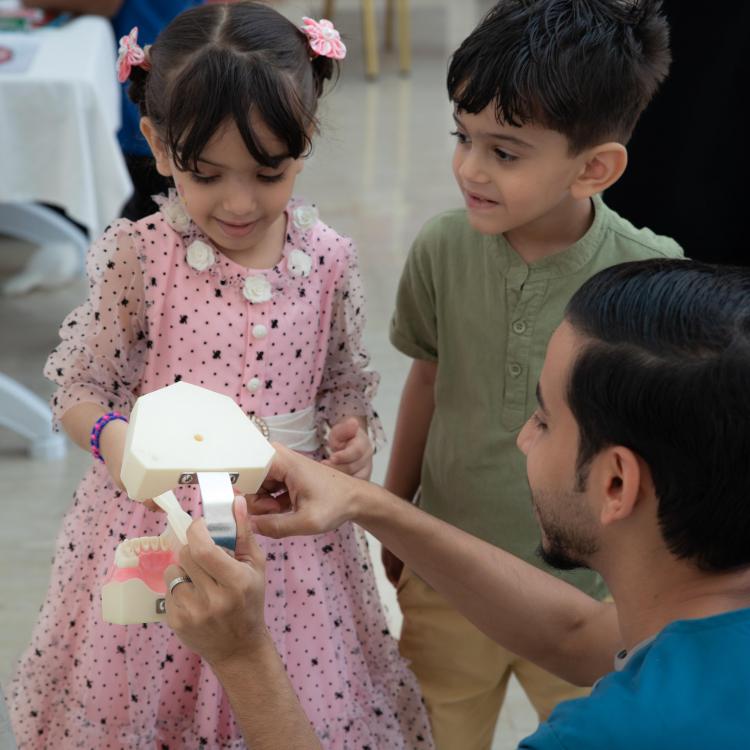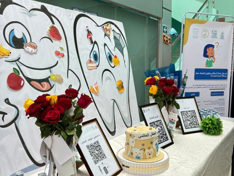 تزامناً مع اليوم العالمي للطفل نفذت كلية طب الأسنان ممثلة بوحدة خدمة المجتمع و وحدة تدريب أطباء الامتياز برنامج توعوي تثقيفي خاص بصحة الفم و الأسنان و ذلك يومي الاثنين و الثلاثاء الموافق 27 - 28 نوفمبر استهدف البرنامج الأطفال من مراجعي العيادات و ذويهم . حيث تم فيه شرح الطرق الصحيحة للعناية بنظافة الفم و الأسنان و كذلك كيفية الاستخدام الصحيح لفرشاة الأسنان و تحدث أطباء الامتياز عن أهمية تنظيف الأسنان منذ الطفولة و أن ذلك يؤثر على صحة الفم المستقبلية للأطفال ولهذا السبب من المهم للغاية العناية بها منذ سن مبكرة ، و اشتمل البرنامج على أركان للرسم و التلوين و أركان أخرى لألعاب البازل و التركيب و العديد من الفعاليات الجاذبة للطفل كما و تم توزيع فرش الأسنان الخاصة بالأطفال و معاجين الأسنان التي تحتوي على الفلورايد مما يجعلها مناسبة للأطفال من عمر 6 سنوات فما فوق حيث يحمي مينا الأسنان من التآكل والتسوس الناتج عن الأحماض التي تكونها بكتيريا الطعام و يساعد في تقوية الأسنان اللبنية والأسنان الدائمة التي ما زالت في طور تكوينها و كذلك يحمي لثة الأطفال من الالتهاب .