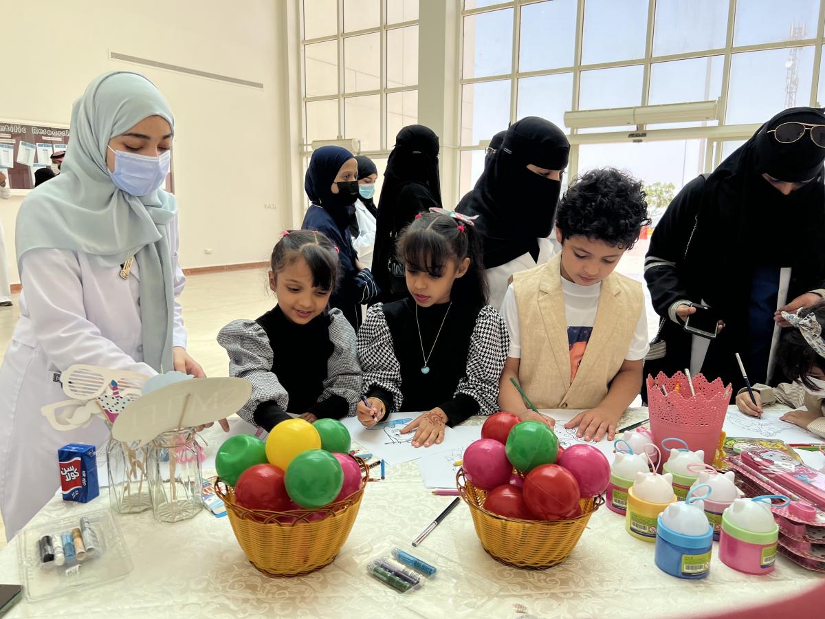 وشارك قرابة 27 يتيماً في عدد من البرامج التي أعدتها وحدة الأنشطة الطلابية بهدف رسم البسمة على شفاههم وتوعيتهم من جانب آخر ، حيث تم تخصيص ركن للتوعية بالغذاء الصحي وركن للطريقة الصحيحة لتفريش الأسنان وركن للرسم حيث شارك المحتفى بهم بفعالية مع البرامج المقدمة لهم ..