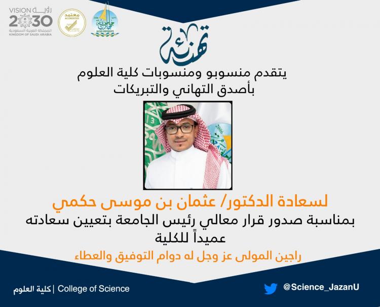 الدكتور عثمان بن موسى حكمي عميدا لكلية العلوم